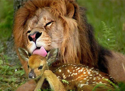 szabadon. Az oroszlán szeretetből nyalogatni fogja az őztehén testét, és